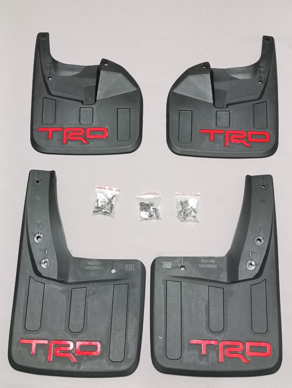 Full set of front and rear mud flaps designed for the Toyota Hilux TRD